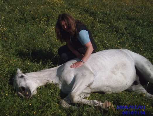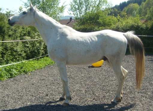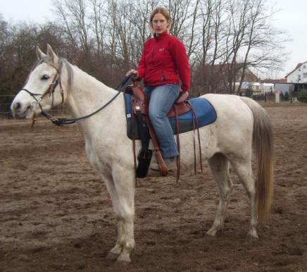 Ich war in deiner Rubrik "Arabs und Ihre Menschen" mal vertreten mit meinem Wallach Dakar. Den ich dann ja aus Zeitgründen und weil ich mit ihm überfordert war verkaufen musste. Mittlerweile ist einiges Wasser den Fluss runter.....naja, ich wollte nie mehr nen Araber. Aber andererseits kann man seine große Liebe jemals vergessen.....und so trug sich folgendes zu... Im Januar erreichte mich eine Mail, 10 Araber aus einer Gestütsauflösung aus Frankreich für relativ günstig, 2000-4000 € teilweise noch ungeritten usw. Es waren Bilder dabei, wonach die Pferde ECHT topp aussahen. Ich hab die Mail schnell gelöscht. BLOSS KEIN PFERD MEHR dachte ich. Ich war mittlerweile als Reitbeteiligung bei meiner Nachbarin an 2 Ihrer Araber sehr glücklich. Ca. 3 Monate später hörte ich wieder von den "Frankreich-Arabern". Sie waren mittlerweile in Deutschland bei einem Händler unter gekommen, und teilweise auch schon vermittelt. DRINGEND waren noch ein Schimmel- und ein Fuchswallach, 10 und 15 Jahre alt abzugeben, angeblich ziemlich verwahrlost, der Schimmel für sehr günstig, der Fuchs, da mittlerweile auch krank (Erkältung) gegen Schutzvertrag zu verschenken. Meine Nachbarin interessierte sich für den Fuchs....die Pferde-Physiotherapeutin und Bekannte meiner Nachbarin "drängte" (im Positiven *gg*) mich dazu, dass der Schimmel doch was für mich wäre. Ich war nicht SO überzeugt, aber da meine Nachbarin auch auf den Fuchs neugierig war, beschlossen wir, die 3 Stunden bis zum Händler zu fahren. So lernte ich Ameer kennen. Schimmel, 10jährig, ungeritten, sein bisheriges Leben nur mit dem anderen Wallach und 8 Stuten auf der Weide verbracht. Keine Krankheiten bekannt blabla. Ich trat an seine Box, er hatte einen freundlichen, aufgeschlossenen Blick drauf und wahnsinnig liebe Augen. Der Rest war eher ne Katastrophe. Hufe viel zu lang, abgemagert, stumpfes Fell. Zähne offensichtlich restaurierungsbedürftig. Wir nahmen ihn aus der Box und haben ihn auf einem Kleinen Platz laufen sehn. Er ist dann einmal im Trab quer durch die Bahn geschwebt, Kopf und Schweif stolz erhoben. Meine Nachbarin hat gegrinst und gesagt, mehr müsse sie nicht sehen. Ich habe innerlich geflucht, dass wir nicht gleich mit Hänger hingefahren sind..... 10 Tage später sind wir wieder hin und haben das Schimmelchen geholt. Wider aller Vernunft. Ich hatte die meisten Bedenken, weil er ja noch ungeritten war. Aber ich hatte ja noch meinen NHS-Trainer in der Hinterhand, der mir dringend anriet, das Pferd zu nehmen, da es ja echt ein Spottpreis wäre, und es in seinen Augen keinen Unterschied machen würde, ob 3jährig und ungeritten oder 10jährig und ungeritten....