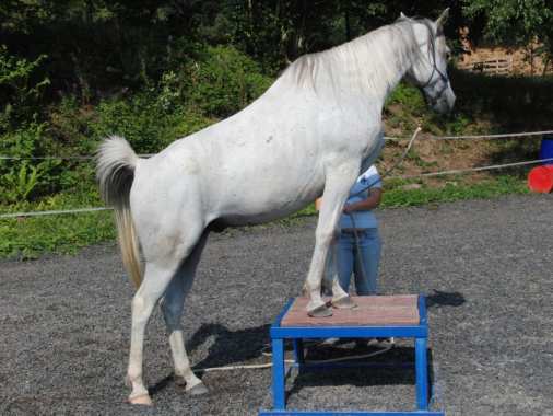 Seit Anfang Mai bin ich also wieder Arab-Besitzerin. Ich habe ENDLICH mein Schimmelchen, was ich mir schon immer gewünscht habe. Wir haben ihn über den Sommer problemlos angeritten und hatten zuletzt ein wenig Probleme mit den Hufen, nach dem Ausschneiden lahmte er die letzen beiden Male, die Hufwand auf einer Seite ist aufgrund der früheren Mangel-Haltung noch unterhöhlt und das macht ihm immer wieder zu schaffen. Fürs Gelände habe ich nun Hufschuhe und aufm Platz gehts momentan wieder ohne. Vom Charakter her ist er ein absoluter Juwel. Er ist halt schon "erwachsen" - auch wenn er Zeit seines Lebens nur auf der Wiese stand, ihn schockt gar nix. Blaue Plane raschelnd aus der Ecke ziehen? Gleich mal hin und gucken was das ist! Ein Holzstapel im Gelände am Wegesrand? Gleich mal mit der Nase anstupsen und gucken ob´s umfällt. Ich war mit ihm auch schon auf ein paar NHS-Kursen, die Rückmeldung auf ihn und seine Fortschritte sind überall ungemein positiv. Ich liebe dieses Pferd mittlerweile wirklich sehr, ich wüsste gar nicht mehr, was ich ohne ihn anfangen soll.